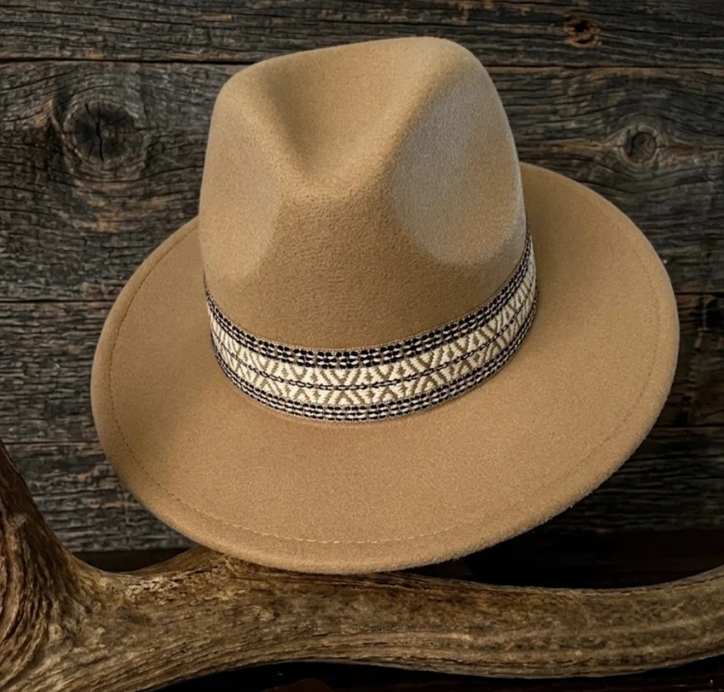 Braided strap embroidered faux, suede, cowboy hat