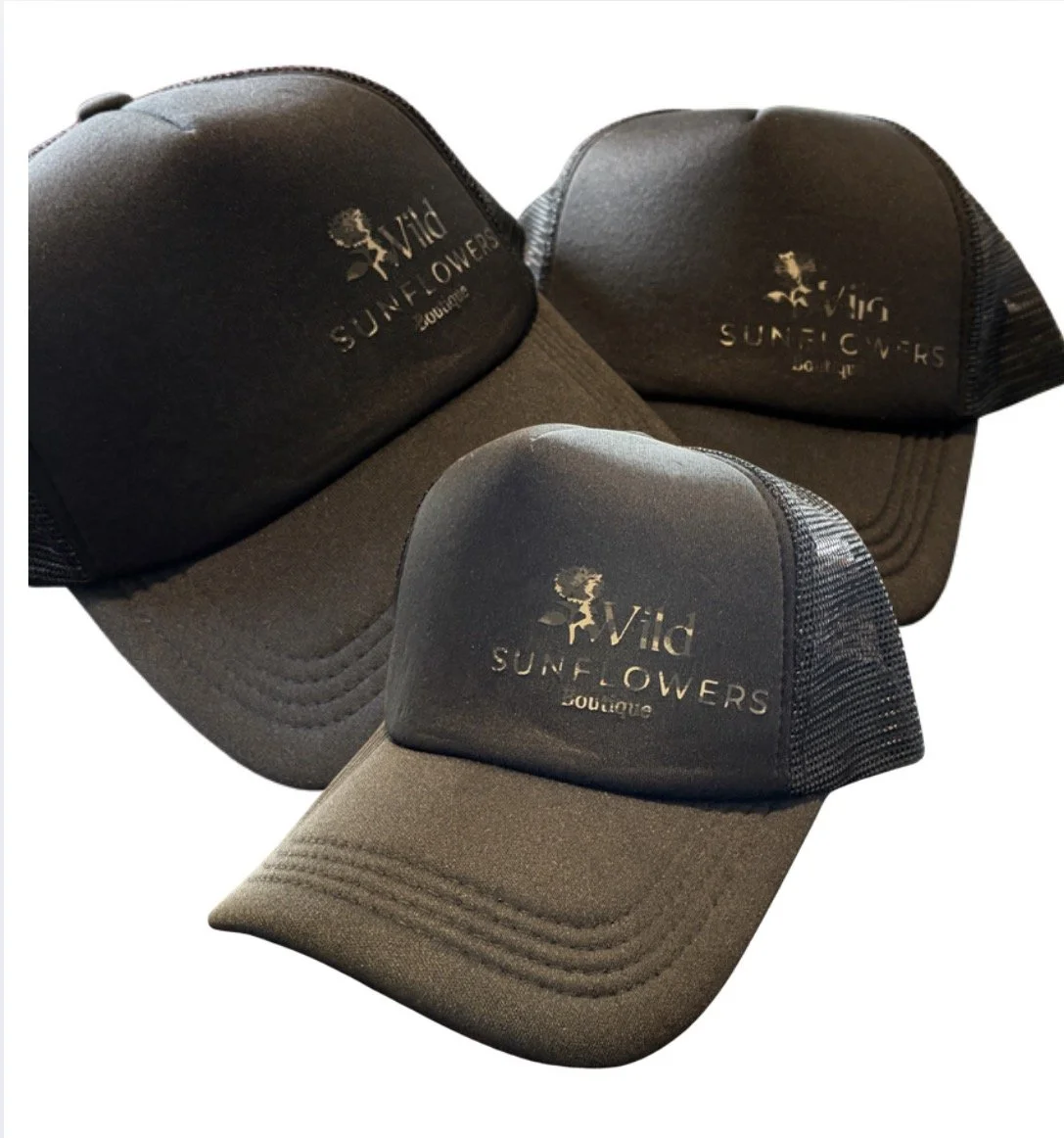 Soft shell, mesh hat, black, wild sunflowers boutique, merch